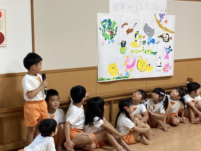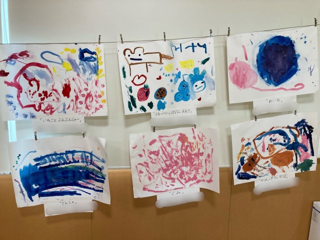 9月10日から9月12日にかけて学年ごとにテーマを決めて、年少、年中、年長にかけて、絵画展をしました。