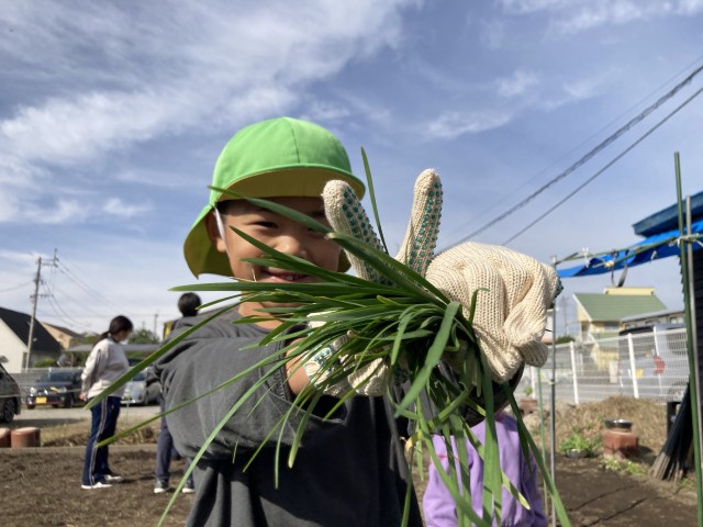 チーム分けをして、みんなでお味噌汁チームで使う食材の水菜や、菜園で育てたニラの収穫をしました☆