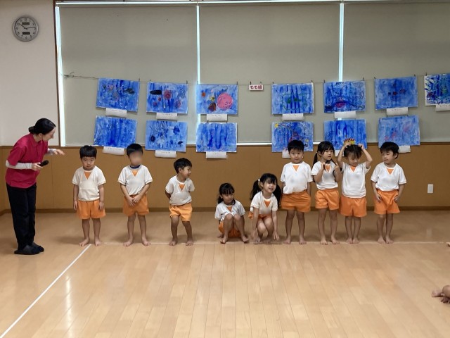 年中クラスはクレヨンや絵の具を使って「海の中」をイメージしながら描きました。