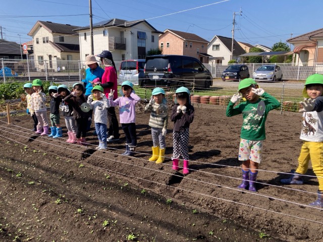 今日の食育活動は、なないろ食堂で使う野菜(水菜・小松菜・ほうれん草・ラディッシュ)の種を植えました。