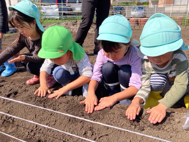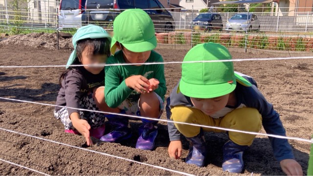 子ども達は種の大きさ・色の違いを探したり、「これが大きくなるのか、、」と興味津々でした^_^
